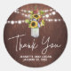 Adesivo Redondo Vaso de Mason Girassol Borgonha Casamento Obrigada