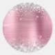 Crie os autocolantes do seu partido. Garota falso brilho prateado cintilante sobre uma folha metálica de cor de rosa claro. Personalize o fundo do vazio artístico com seu próprio texto personalizado. As faíscas, a brilha e a falsa arte digital em folha metálica, tudo impressão como uma foto.