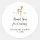 Este adesivo de favorecimento do Watercolor Boy Deer on White chá de fraldas é perfeito para um simples chá de fraldas ou borrifo. A design de bosque apresenta um veado aquarela com cogumelos azuis e caligrafia escura clássica sobre fundo branco comum. Personalize-o com o nome da futura mãe e a data.