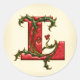 Decorre seus cartões de Natal e envelopes de férias com este belo adesivo de Natal / selo de envelope que tem uma letra vermelha monograma L adornada com holly contra um fundo de aparência antiga. A imagem de fundo personalizável pode ser removida se você preferir um fundo branco ou se você puder alterá-la para a cor, à sua escolha, com o botão personalizar. Este adesivo também é excelente para o fazer dos seus cupcakes para a sua festa de férias!