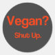 "Vegan? Cale-Se." Este ditado engraçado diz aos veganos de uma forma não tão sutil que eles podem ser irritantes quando falam sobre serem veganos. Este ditado anti-vegan não é tão anti-vegano como é anti-falante. Este ditado anti-vegan faz uma camiseta engraçada, assim como um botão engraçado, um imã, uma caneca ou outro presente para um homem ou mulher onívoro que não quer ouvir sobre as virtudes do veganismo.