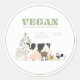 Se podemos viver nossas vidas sem causar dor e sofrimento aos outros, o que certamente podemos, então por que não? Este é meu último design vegano celebrando gentileza e compaixão para todas as criaturas sensíveis por um estilo de vida mais saudável, mais sustentável e mais gentil. O texto da design é: "VEGAN, porque toda vida é precioso e não apenas vida humana". As ilustrações abaixo do texto incluem ovinos, borregos, suínos, leitões, vacas, cabras, galinhas, pintinhos e galos, uma representação adorável de animais individuais e sensíveis. Design por NATALIE KINNEAR