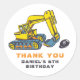 Favoritos para festas bonitos para crianças, rapazes ou raparigas que adoram grandes máquinas e veículos de construção. Uma ilustração colorida do escavador. Perfeito para festas de aniversário, favoritos para festas e obrigados que você rotula.