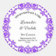 Um rótulo de vela floral rústico com arte safena de flores e folhas em matizes roxas e violetas, e roteiro e letras serifas editáveis, para velas, sabão ou receitas feitas à mão.