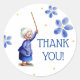 Adesivo Redondo Velha floral azul com obrigado de cana