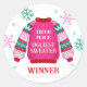 Esta design de 3ª competição Feia-Doce apresenta o texto 'Third Place' 'Ugliest Sweater' e 'Winner' com flocos de neve pelo lado de fora. Você pode modificar o texto se também desejar as opções de primeiro e segundo lugares. Veja toda a coleção correspondente. Toda a trabalho de arte é ilustrada e protegida por direitos autorais por Kaitlyn Thomas.