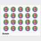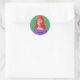 Um adesivo clássico, verde-chic, redondo, com uma mulher clássica, cabelo e óculos vermelhos, e nome personalizável. Para cartas de música, presentes, para escola e escritório.