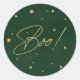 Um elegante e moderno "Boo!" Vinheta adesivo/selo de envelope com dourado (faux/digital - NÃO impresso em folha) e estrelas dispersas contra um fundo verde ligeiramente angustiado. Funciona em formas adesivas redondas ou quadradas. Disponível em outras cores e na coordenação de convites e acessórios.