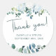 Estes florais românticos e elegantes... Obrigado, os adesivos fazem o selo perfeito para o seu favor de casamento, apresentando um buquê botânico clássico de folhas de cor clara e aquática.. complementadas com delicadas flores brancas... e é facilmente personalizável com seus nomes e data de casamento.