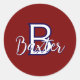 Adesivo Redondo Vermelho Branco e Azul Nome e Monograma Personaliz