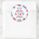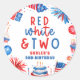 Adesivo Redondo Vermelho, Branco e Dois Festa do segundo aniversár