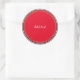 Adesivo Redondo Vermelho Brilhante com Texto Branco