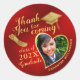 Adesivo Redondo Vermelho e Dourado Obrigado Classe de Graduação 20