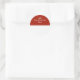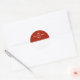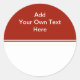 Adesivo Redondo Vermelho Escuro com área branca e texto.