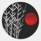 Vermelho-sol negro, branco-branco, Bambu-árvores e sol vermelho em círculo preto-e-branco desenhado à mão com tinta na tradicional pintura japonesa