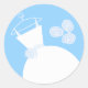 Bonito adesivo de tema pastel com um vestido estilizado de casamento e flores em tons de azul e branco. Um design personalizável para você personalizar com seu próprio texto, imagens e ideias.