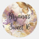 Adesivo Redondo Vestido Borboleta Roxo e Dourado Fantasia Doce 16