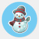 Adesivo Redondo Vestido com um bonitinho Snowman segurando uma fol