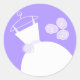 Bonito adesivo de tema pastel com um vestido estilizado de casamento e flores em tons de roxo e branco. Um design personalizável para você personalizar com seu próprio texto, imagens e ideias.