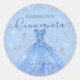 Adesivo Redondo Vestido de Noiva Azul Poeirento Prateado Lantejoul