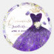 Adesivo Redondo Vestido de Quinze Anos Violeta Roxo com Brilho Pix