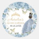 Adesivo Redondo Vestido Princesa Borboletas Douradas Florais Azul