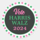 Adesivo Redondo Vestido Verde Rosa 2024 Vote Harris Walz
