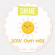 Brilhe seu dia com este animado design de motivação, com um sol sorridente e a mensagem elevadora "Brilhe seu próprio jeito." Perfeito para inspirar positividade, autoconfiança e abraçar sua singularidade. Ideal para adesivos, posters e compartilhamento digital.