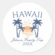 Celebre as inesquecíveis férias havaianas de sua família com este elegante e temível adesivo tropical. Apresentando um design minimalista de pôr do sol enquadrado por palmeiras, é perfeito para reuniões familiares, guardas de férias ou recordações de viagem. Este adesivo redondo clássico adiciona um toque de vibrações na praia e sofisticação aos álbuns, sacos de presentes ou favoritos para festas personalizados. Personalize o ano e o nome da família para comemorar sua aventura havaiana em estilo! Ideal para eventos tropicais, este adesivo é um imperativo para capturar essas memórias especiais de ilhas.