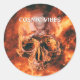 Adesivo Redondo Víblias cósmicas. Crânio flamejante no espaço
