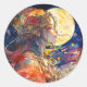 Adesivo Redondo Vibrante Aquarela de Garota e Vinheta-Lua