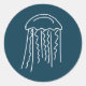 Água-viva-viva branca e branca em fundo azul marinho. Este tema marinho sobre a vida no mar aquático tem o tema arte moderna, fofa e divertida. Você deseja água-viva.