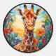 Um adesivo redondo colorido apresenta uma girafa redonda gerada por IA e um retrato floral em vidro colorido. Excelente para selos de envelopes, bolsas favoráveis e muito mais