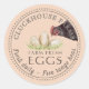 Um tom alegre de melão com tinta colorida de cor castanha na terra, numa galinha original e na ilustração dos ovos. A borda pontilhada faz disso um rótulo clássico e antiquado para seus ovos ou correspondência de galinha. Fonte de abertura.