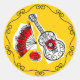 Design de Whimsical desenhado em estilo retrô, com lembranças de um feriado espanhol; uma guitarra de ferro em formas brutas, um fã de legado e uma rosa vermelha. Um design personalizável em preto, branco, vermelho e ouro amarelo para você personalizar com seu próprio texto, imagens e ideias. Uma imagem de arte digital original criada por QuirkyChic.