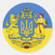 Vinheta com a bandeira e casaco de armas ucranianas (leão, tridente, kozak)