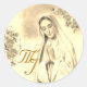Design apresenta uma bela imagem de Nossa Senhora da Fátima como um oval no centro. Imagem de rosas brancas e rosadas delicadas formam um quadro. As iniciais dos nomes dos primeiros casais são exibidas no canto inferior esquerdo da imagem. Design também disponível em cor e cor prateada. Projetado para coordenar com a "Virgem Maria Católica Suite de Casamento".