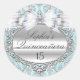 Quinceanera Sticker. Damasco azul e arco de joia prateada. Zazzle exclusivo. Personalize com seus próprios detalhes. POR FAVOR, OBSERVE todas as imagens planas! Eles não têm prata, arcos, Ouros ou Joias!