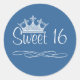 Adesivo Redondo Vinheta Azul bonito Doce 16 Aniversário