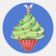 Adesivo Redondo Vinheta azul Cupcake da árvore natalícia