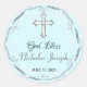 Um adesivo de "Deus abençoe" para qualquer ocasião religiosa. Excelente para selos de envelope ou favores. Bebê Azul, Prata e branco. Cores Clássicas.