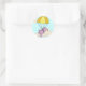 Adesivo Redondo Vinheta Branca Branca de Guarda-Chuva Rosa