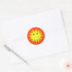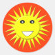Este conjunto de adesivos redondos apresenta este brilhante e sorridente sol amarelo que é garantido para fazer você sorrir mesmo nos dias mais miseráveis. Está sobre fundo quente vermelho e tem uma boca sorridente branca e grandes olhos pretos com pupilas brancas.
