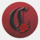 Adesivo Redondo Vinheta C do Monograma preto e Rosa vermelha
