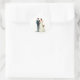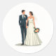 Inclui 20 pequenos adesivos numa única folha. Um adesivo clássico com um casal de casamento tradicional — o noivo de terno de marinho e noiva de vestido branco com um buquê floral.