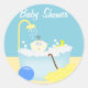 Adesivo Redondo Vinheta Chá de fraldas Azul de Banheira Súbita