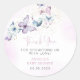 Adesivo Redondo Vinheta Chá de fraldas de borboleta roxa