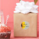 Os Chás de panela de linho e girassol favorecem os adesivos. Foto de girassol maravilhosa no efeito fotográfico de roupa bege impresso em fundo com nome de noiva e qualquer outro texto que você queira.