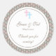 Esta etiqueta/vinheta de favorito "Cruz de Damasco, Azul e Castanho" tem convite batismico correspondente, cartões de agradecimentos, etiqueta de endereço de devolução e carimbo de correio. Simplesmente personalize com suas informações.