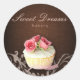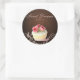 Adesivo Redondo Vinheta-cupcake Linen Castanho Rosas Rosa